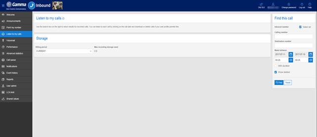This tab is available to users subscribing to Inbound call recording with granted permissions to access